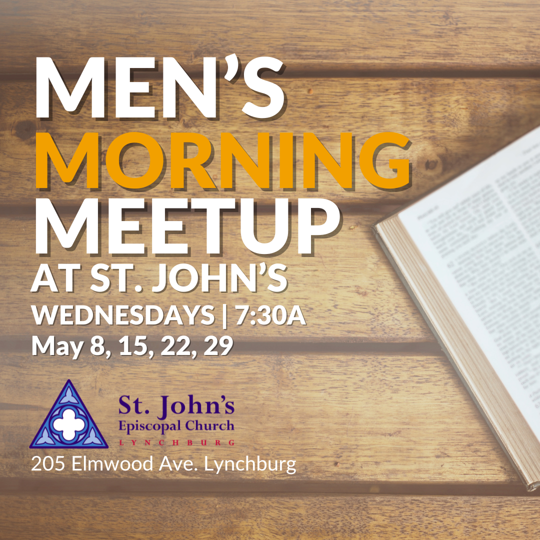 Stop by Wednesday mornings for a cup of coffee, conversation, and a chance to connect with men from St. John's and the whole Lynchburg community. We are hosting this gathering for four Wednesdays only so please join us as you can! All men are welcome.